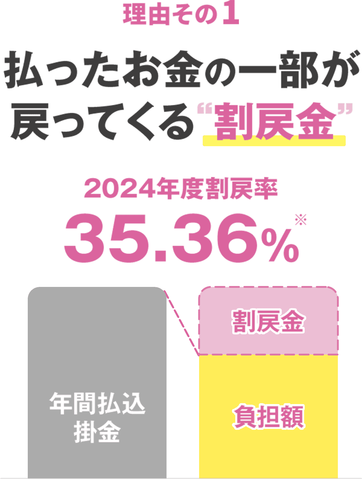 決算により剰余金が生じたときはご加入者のみなさまに割戻金としてお戻ししています。※総合保障型・入院保障型における全国平均実績。各都道府県ごとの実績はそれぞれのホームページをご覧ください。