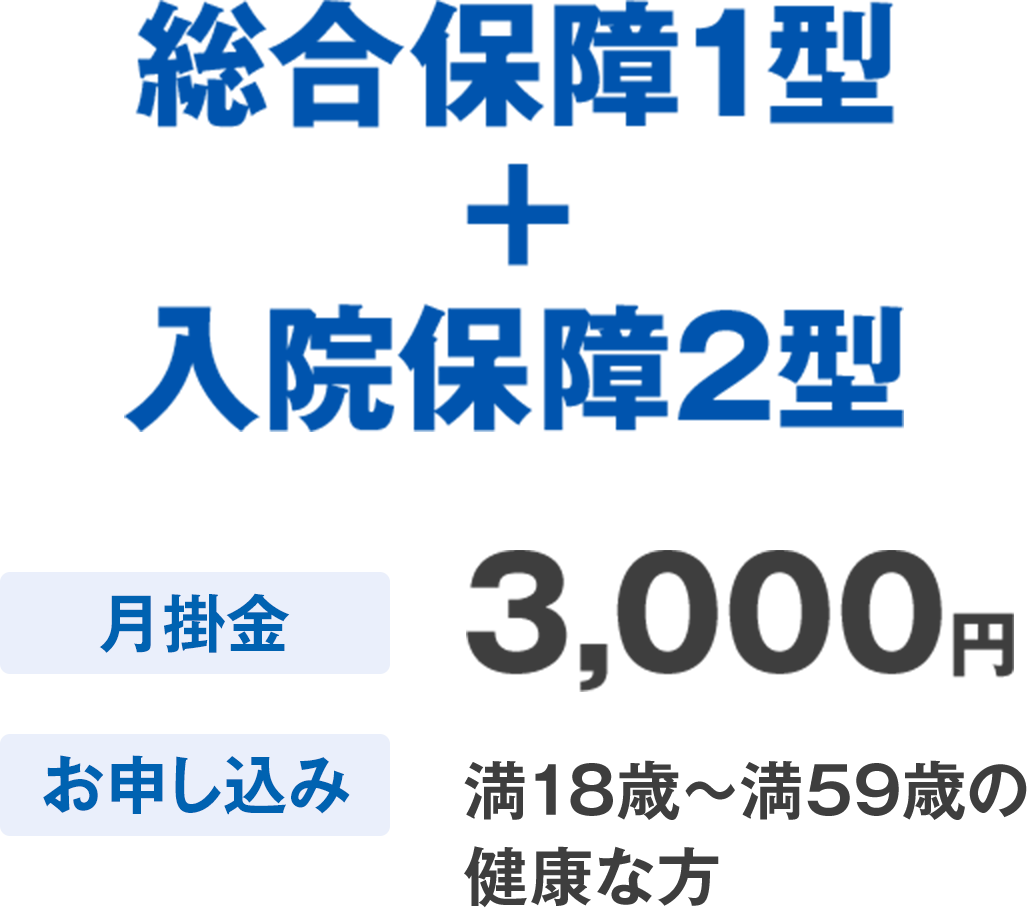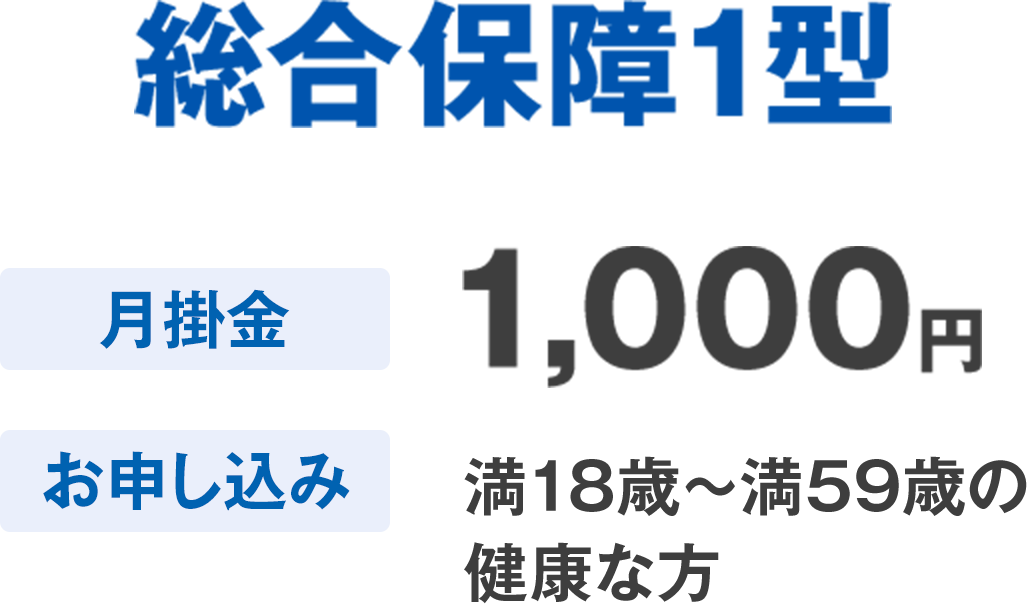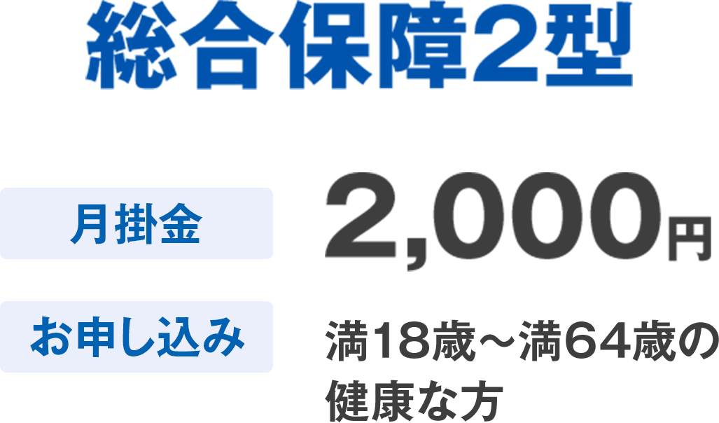 ※「総合保障1型」および、「総合保障1型+入院保障2型」における「総合保障1型」の保障は、65歳で終了となります。